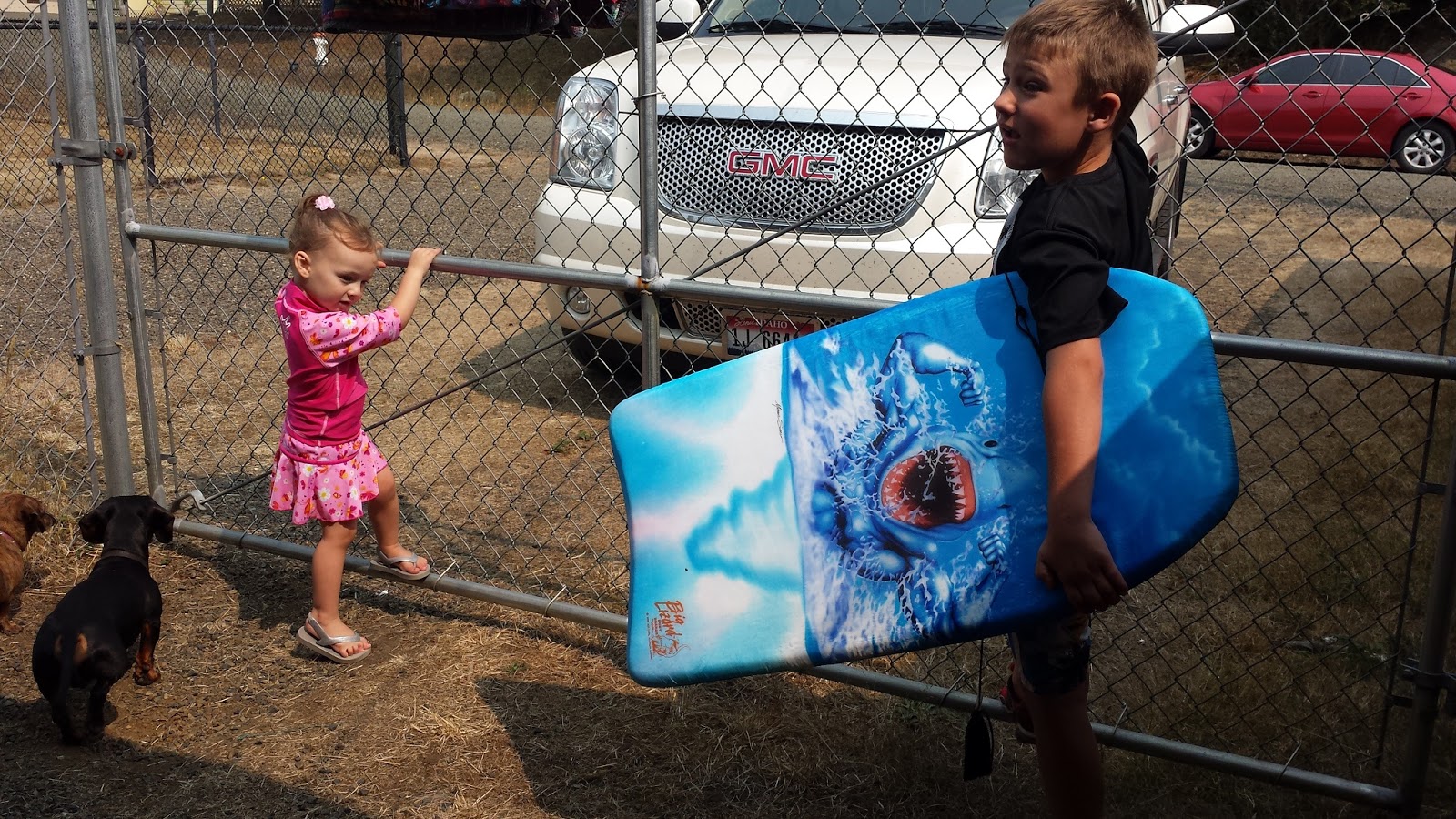 Once the kids were all wet and tired Jake and Oley worked on building a "swimming pool".